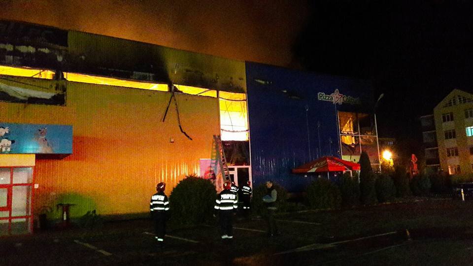 Incendiu puternic la Arad! Un centru comercial, care cuprinde şi un loc de joacă pentru copii, a fost cuprins de flăcări, noaptea trecută.