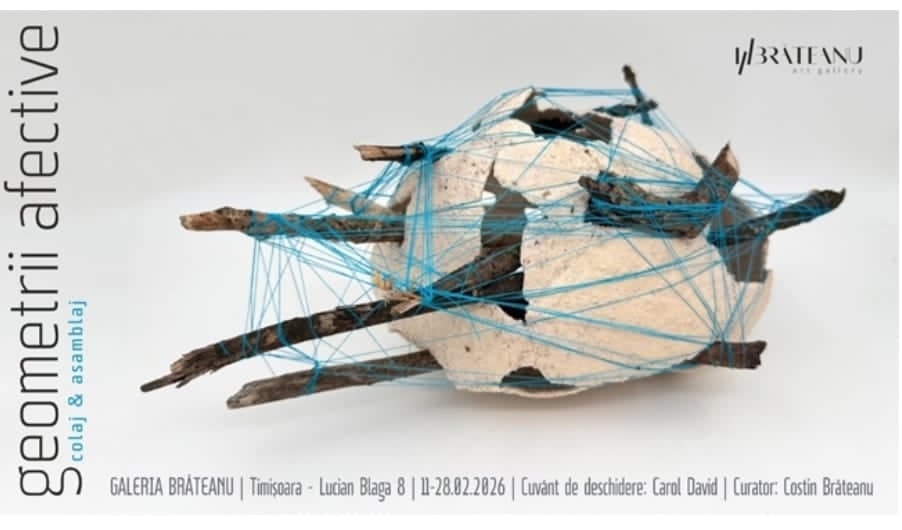 Miercuri, 11 februarie, Galeria Brăteanu din Timișoara ne-a invitat la un nou eveniment expozițional de anvergură: expoziția colectivă de colaj și asamblaj „Geometrii afective”, expoziție deschisă publicului larg în perioada 11–28 februarie 2026.