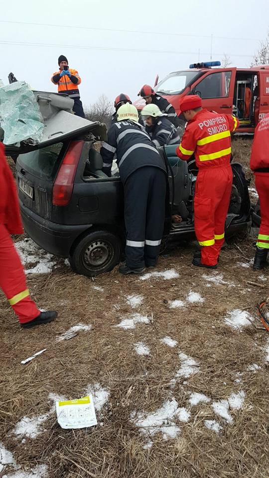Pompierii militari au intervenit pentru descarcerarea unui tânăr dintr-un autoturism marca Fiat Punto, după ce acesta a întrat în coliziune cu un autotren. La locul intervenției s-au deplasat: două autospeciale, dintre care una cu modul de descarcerare, un echipaj SMURD, 1 Ofițer și 10 subofițeri, un echipaj SAJ și două echipaje de la poliție.
